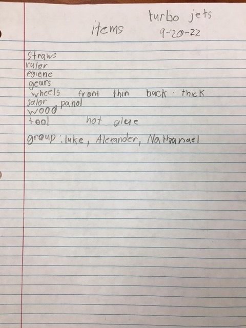 | 9-13-2022 | We began on working on our solar car base . we marked the location were different part of the car would be located. We are working on the car and Kevin is working on the support for the solar panel. Kevin, Nathanael and Luke are working on ideas, our teacher is helping us build and giving us ideas. We also glued parts to the car. We are staring on the front wheels with Luke. | |