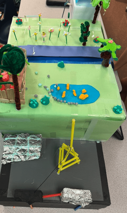 Our team worked together after Jasiah and Dylan came up with a plan then the others helps us complete each piece to make a perfect world. Our project was made out of lots of materials to show different types of beauty in the world. We had the trash to show that even if we are using clean energy there is still things to complete to have a healthy world.