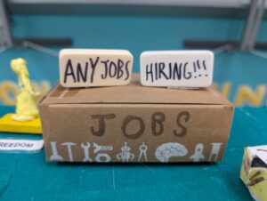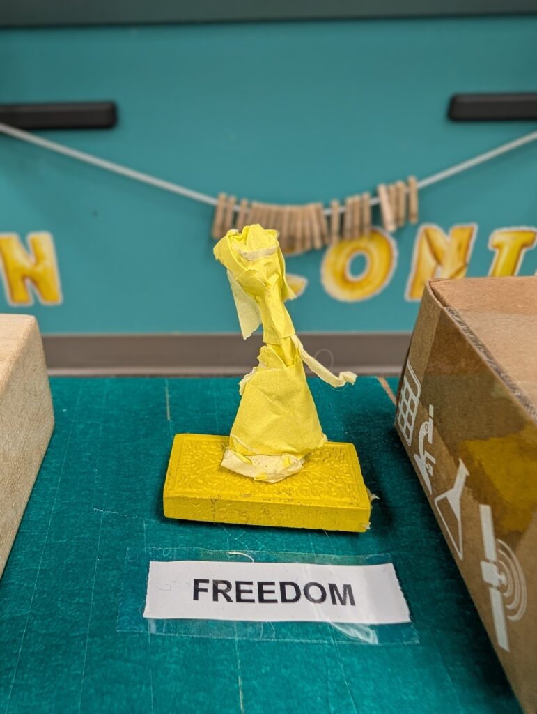 We added a statue to represent the freedom we have. The statue is made from twisted yellow tape.