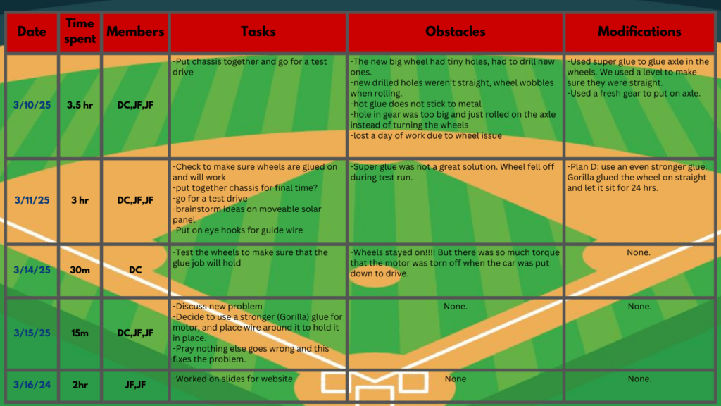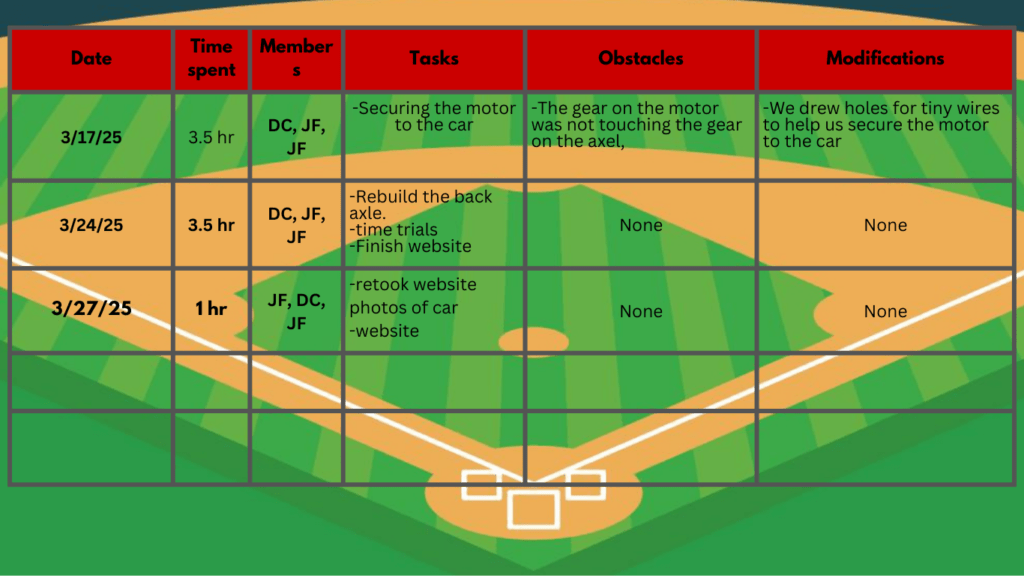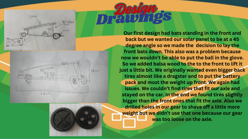 • You had a lot of great documentation and I like your theme! The pictures were a little small to see all the details but I really like your car. Play ball!